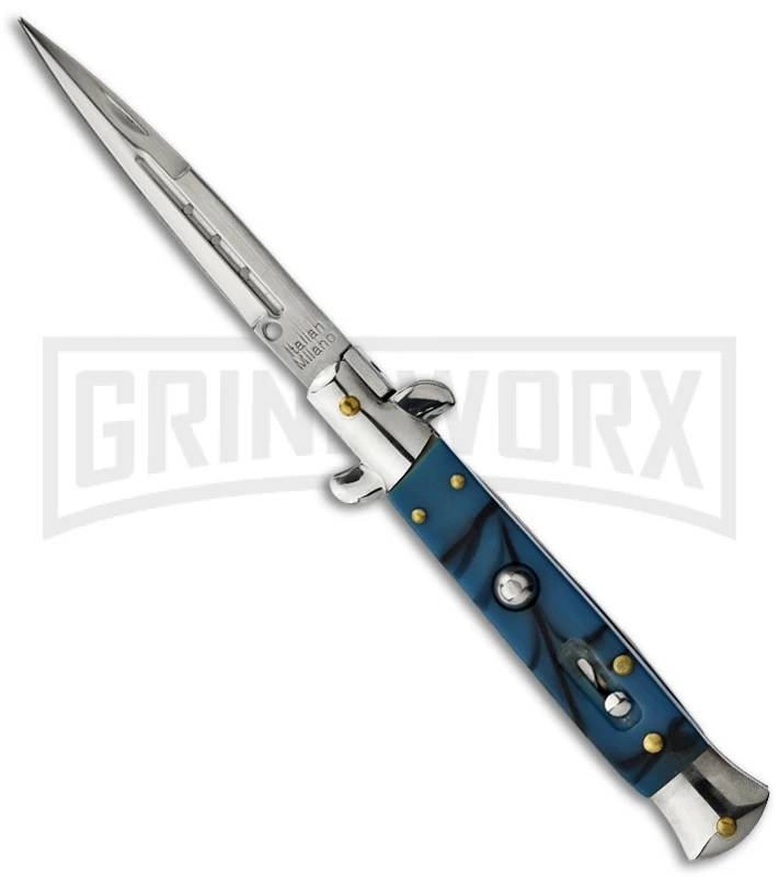 9″ Anomaly Stiletto Blue Swirl Automatic Knife – Bayonet