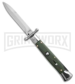 AKC World Green G-10 9″ Automatic Swinguard – Polished Bayonet Blade