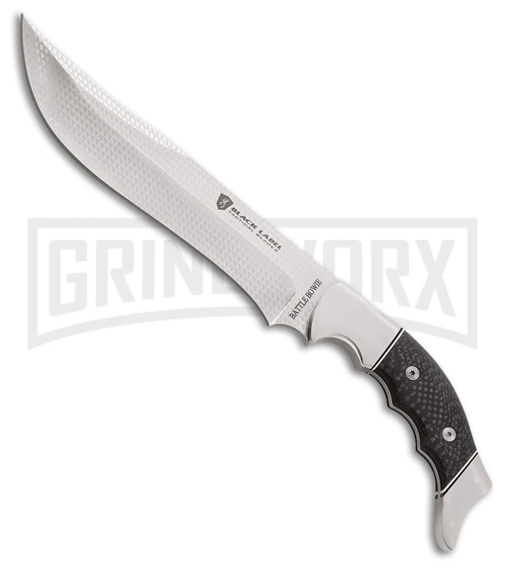 The Browning Black Label Battle Bowie combines classic elements with modern material and design making it a frontier legend reborn. Russ Kommer’s Battle Bowie has a blade shape reminiscent of the original “Arkansas toothpick.” The 440 stainless steel, clip point blade has a satin finish with a checkered design. The handle is made of carbon fiber with stainless steel finger guard and pommel. Also includes a Blade-Tech molded polymer sheath with a Tek-Lok belt clip that is easily adjustable.