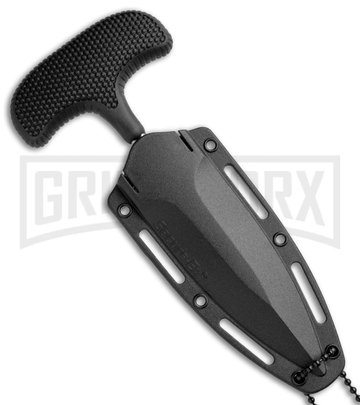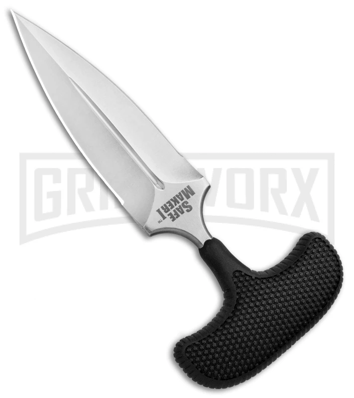The well made Safe Maker series blades deserve equally well-made grips. A lot of time and energy went into the production of our T shaped handles. Made of shock absorbing Kraton they totally encapsulate the tang and part of the shaft so they can be comfortably and securely grasped in the fist with the blade jutting out between the fingers and used to deliver absolutely devastating punching and slashing blows.
