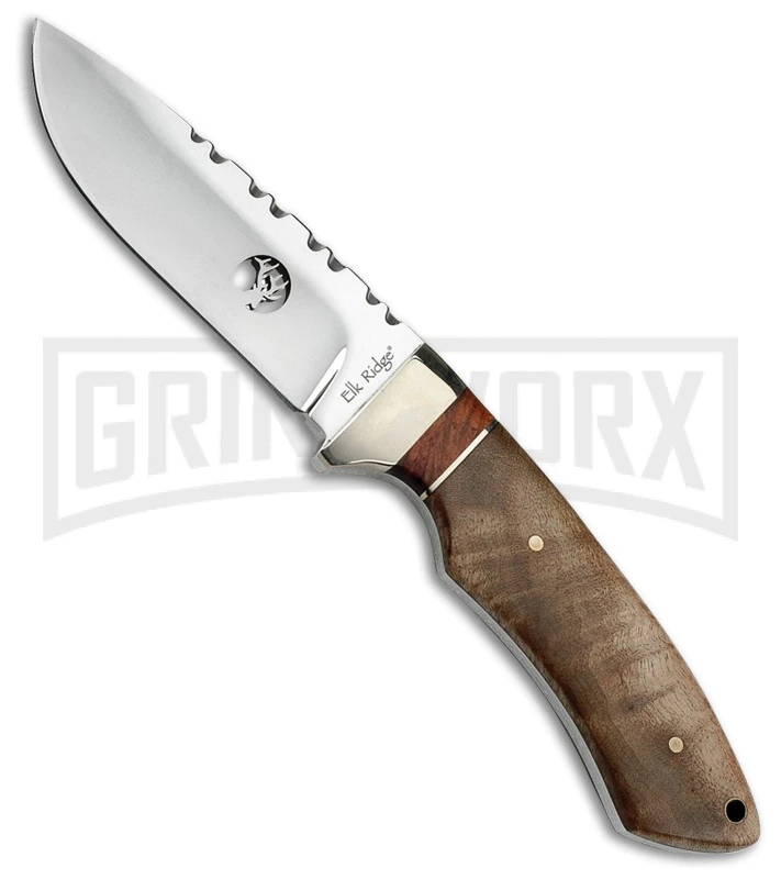 Elk Ridge Brush Master Burl Wood Fixed Blade Knife – Mirror Plain