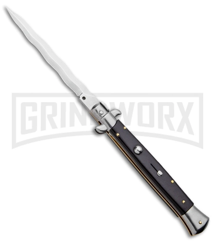 Frank B. 11″ Italian Stiletto Sim Dark Horn Automatic Knife – Kris Polish