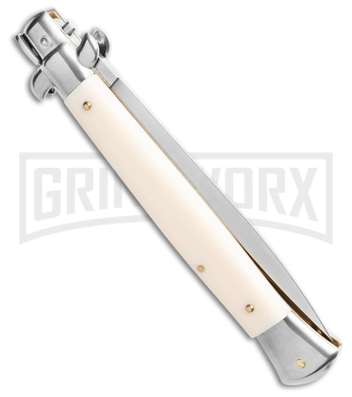 Frank B. 11″ Italian Stilletto Sim Ivory Stiletto Automatic Knife – Satin Plain