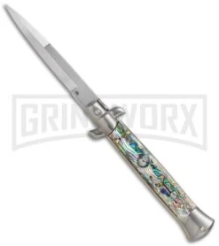 Frank B. 9″ Italian Stiletto Abalone Filework Automatic Knife – Bayonet