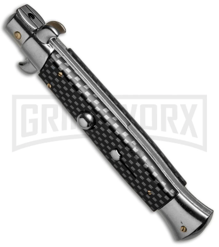 Frank B 9″ Italian Stiletto Sim Carbon Fiber Automatic Knife -Satin Dagger
