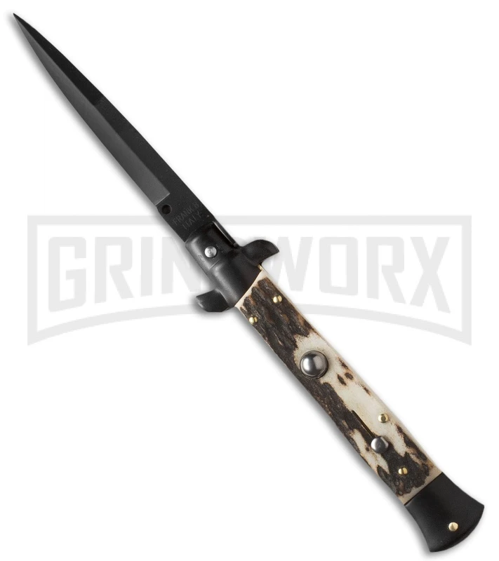 Frank B. 9″ Italian Stiletto Stag Tactical Automatic Knife – Black Bayonet