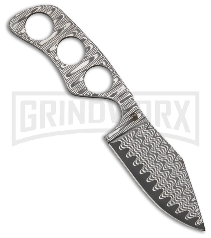 The Fred Perrin Le Bowie is a fixed blade knife for you to carry on your person everyday or to use on your next hunt. You never know when it will come in handy. It has a Damascus steel, clip point blade. The skeletonized tang handle is made of Damascus steel as well, and features an integrated guard and a drilled hole design. A black molded Kydex neck sheath is included and comes with a black beaded ball chain.