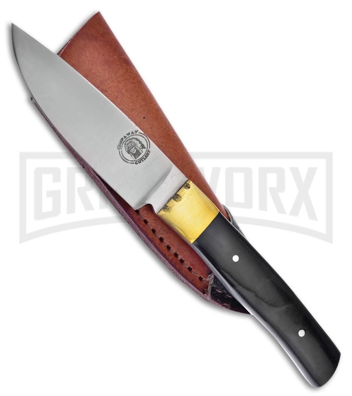 The Frost Cutlery Chipaway Little Fox Skinner is a fixed blade knife excellent for skinning that big buck, that trophy elk, or whatever you hunt. If you want a dependable skinning knife don’t look any further. This knife features a drop point style, stainless steel blade with a satin finish. The handle is a full tang made of buffalo horn with a brass guard. It comes with a brown leather belt sheath.