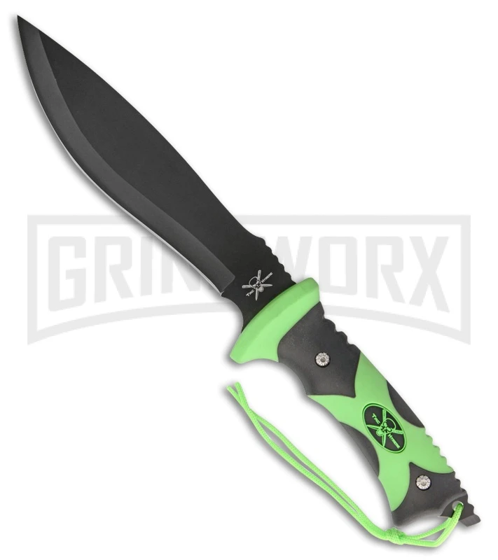 Frost Cutlery Tac Xtreme Zombie Slayer Green Fixed Blade Knife – Black Plain