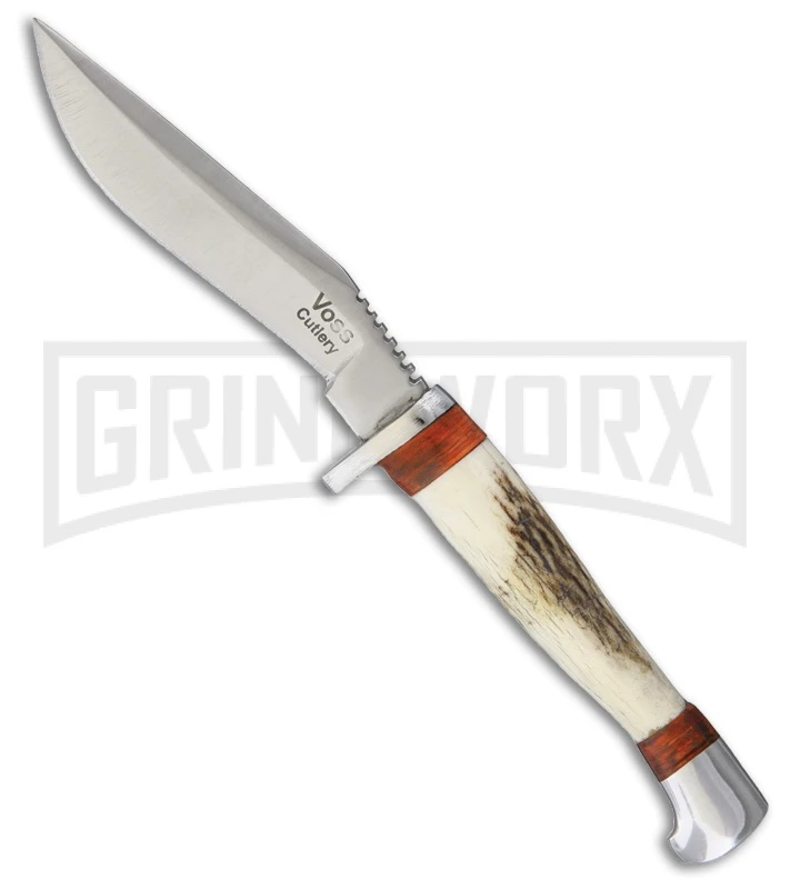 Frost Cutlery Voss Stalker Stag Bone Fixed Blade Knife – Satin Plain