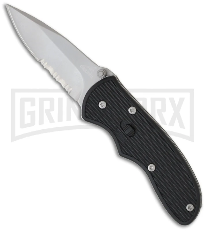 The Mini Gerber Fast Draw features a stainless blade (partially serrated) and stainless liners. Textured nylon handles provide a firm grip. Pocket clip for easy carry. The spring assisted F.A.S.T. action on this knife is smooth and strong. Give the blade a start with the thumb-stud or flipper (located on the back of the handle) and the knife does the rest! The Mini Fast Draw features a sliding lock on the knife’s front. Simply slide it up to release the blade. Good things do come in small packages.