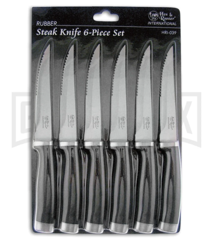 Hen & Rooster International 6 Piece Steak Set Black Rubber – Satin Serr
