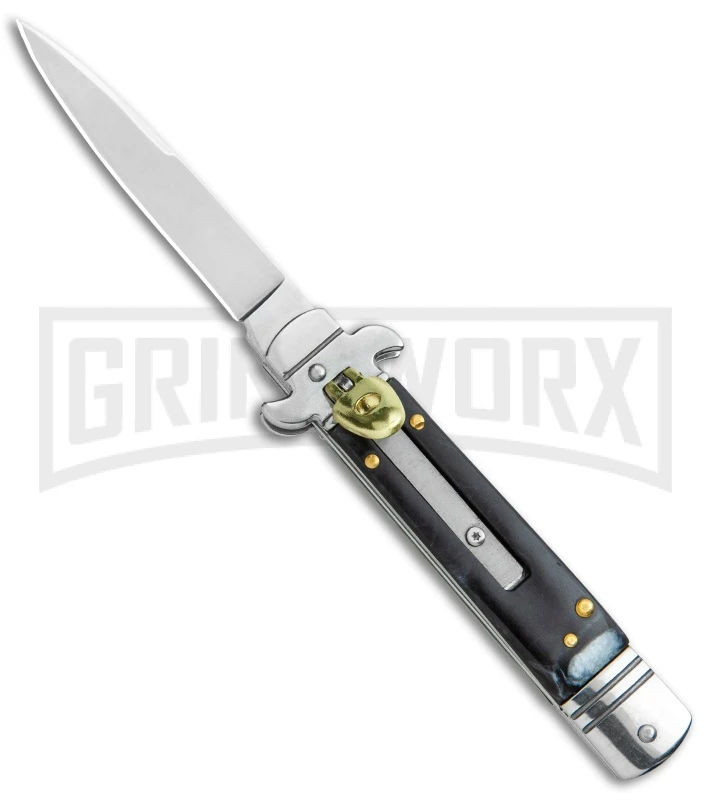 Frank B 11″ Italian Stiletto Dark Horn Automatic Knife – Flat Grind