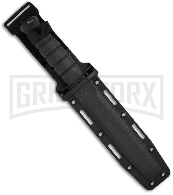 The full-size Ka-Bar, the most famous knife in the World. Features Ka-Bar’s famous oval shaped handles with Kraton instead of leather. This is the same knife design used by the armed forces in World War II. The blade is black coated 1095 Cro-Van steel with a partially serrated edge. This knife comes with a Kydex sheath.