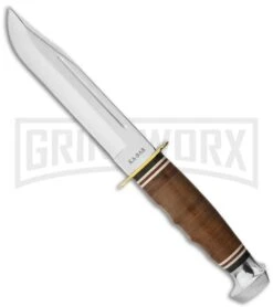 This Ka-Bar is a classically styled leather-handled hunting knife that has been popular since the early 1900’s. It’s dressy enough for gift giving and practical for field use. Includes a brown leather KA-BAR sheath.