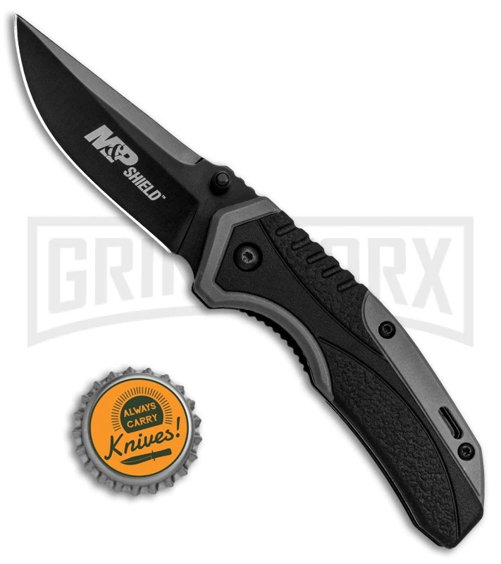 M&P Shield Black/Gray Spring Assisted Opening Knife – Black Plain