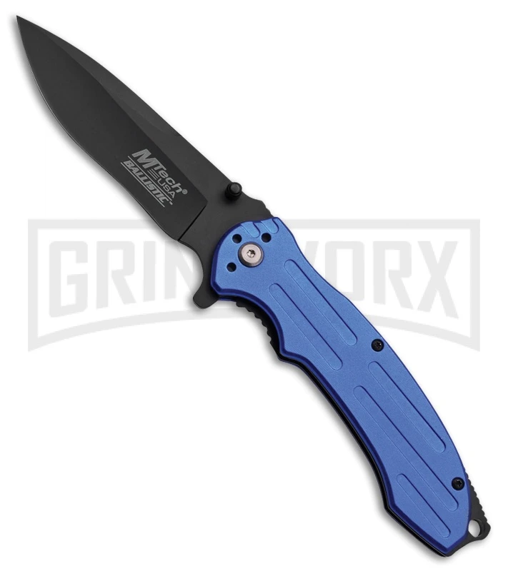 M-Tech Ballistic Stinger Blue Spring Assisted Knife – Black Plain