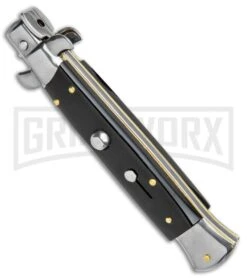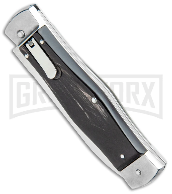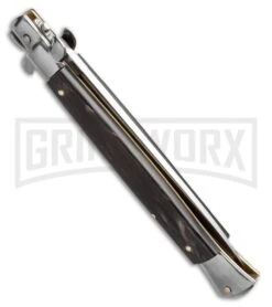 Frank B 11″ Italian Stiletto Dark Horn Automatic Knife – Flat Grind