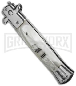 Frank B 11″ Italian StilettoBayo Brazilian Horn Auto Knife – 5″ Satin Plain