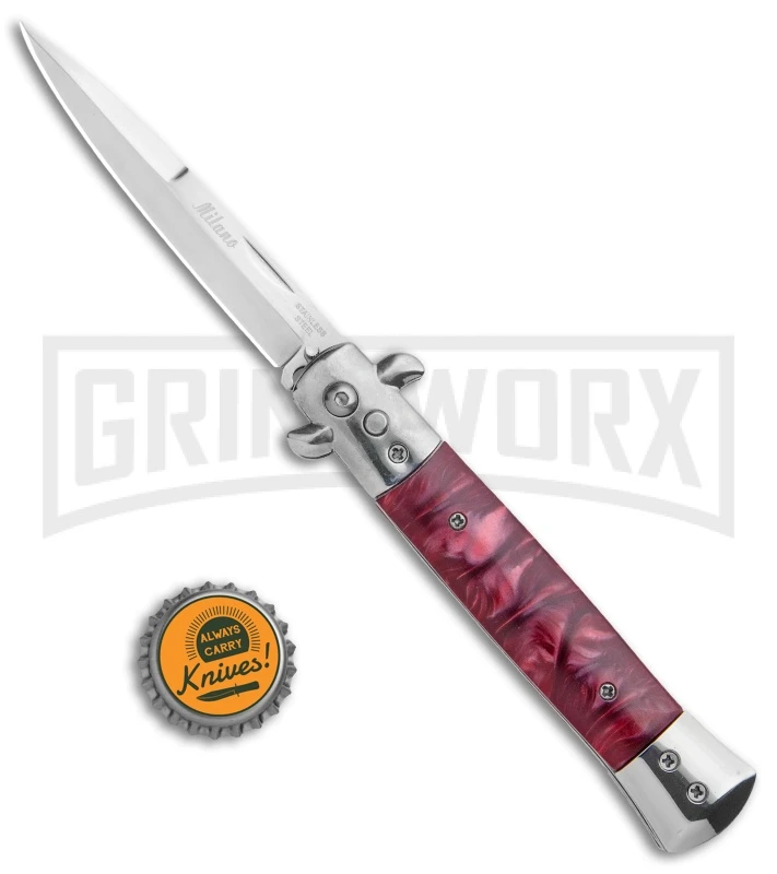 Milano 9″ Italian Stiletto Red Marble Automatic Knife – Bayonet Satin