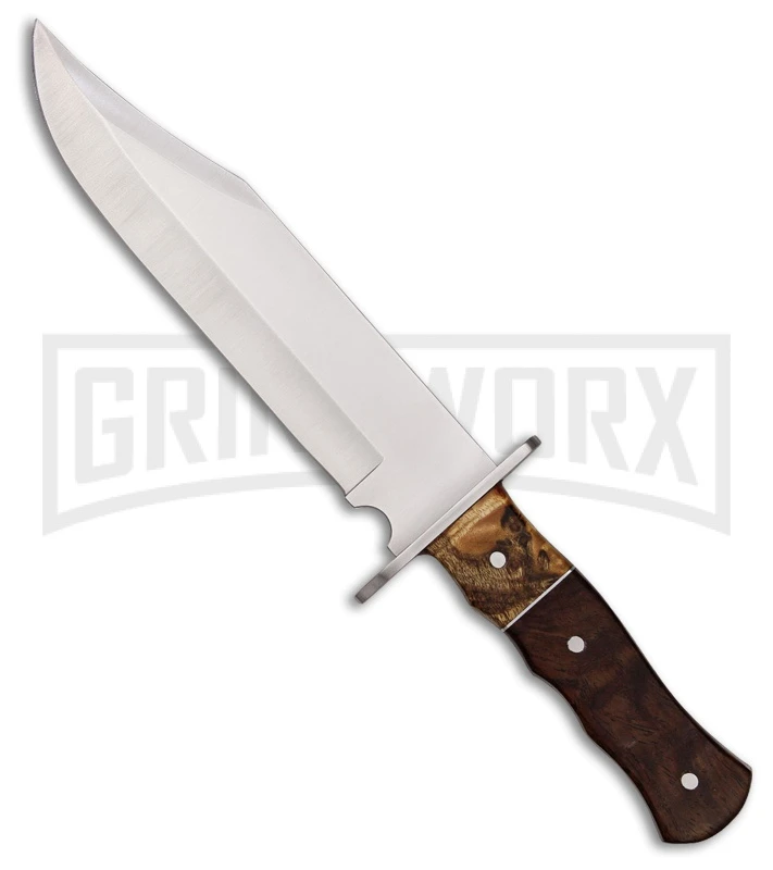 Rite Edge Alamo Bowie Burlwood Fixed Blade Knife – Satin Plain