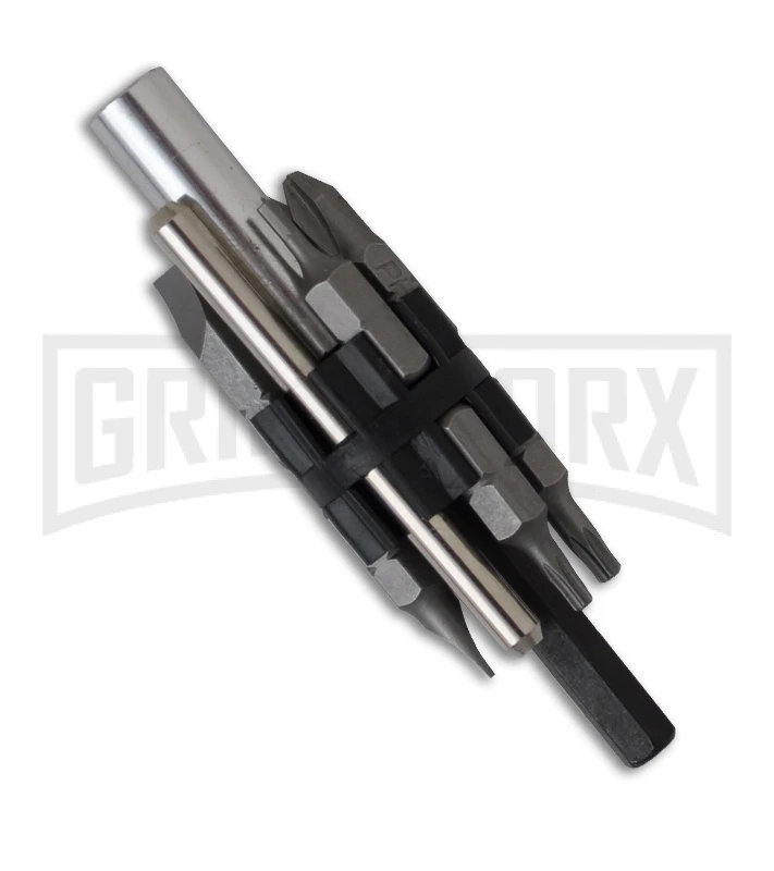 The Schrade Extreme Survival SCHF1 fixed blade is a big knife that features a single piece spear point style blade and handle made from 1070 stainless steel. The 7.5″ blade is partially serrated and the handle has diamond pattern knurling for a confident grip. Unscrewing the handle end reveals a driver tool with flat head (3/32″, 3/16″, 1/4″), Phillips (PH#0, 1, 2), Torx (10, 15, 20), and Allen (5/64″) tips. The O-ring keeps moisture out of hollow handle when tightened appropriately. Includes a ballistic nylon sheath.