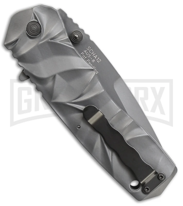 This gray MAGIC Dual Action knife from Schrade offers users the option of high-speed assisted opening action, or controlled manual deployment. Just flip the mode selector switch on the handle to alternate between assisted or manual, and deploy using ambidextrous thumb studs or flipper opener. Its gray finished blade is made from AUS-8 steel to provide a durable cutting platform for daily use at home or in the field. The handle features textured aluminum scales with a coarse coating for a solid grip come rain or shine.