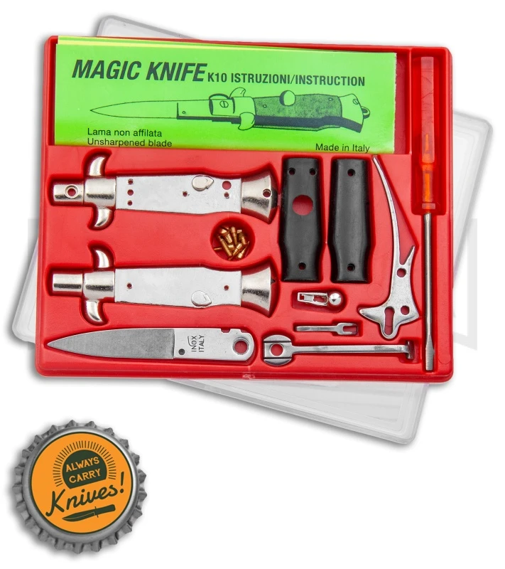 These little kits are a blast! You get to asseble a fully functional 4″ italian stiletto knife. Once assembled, you can use it as a keychain (you must provide your own ring, however).