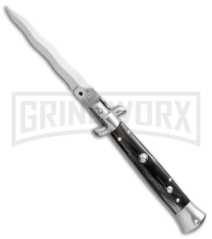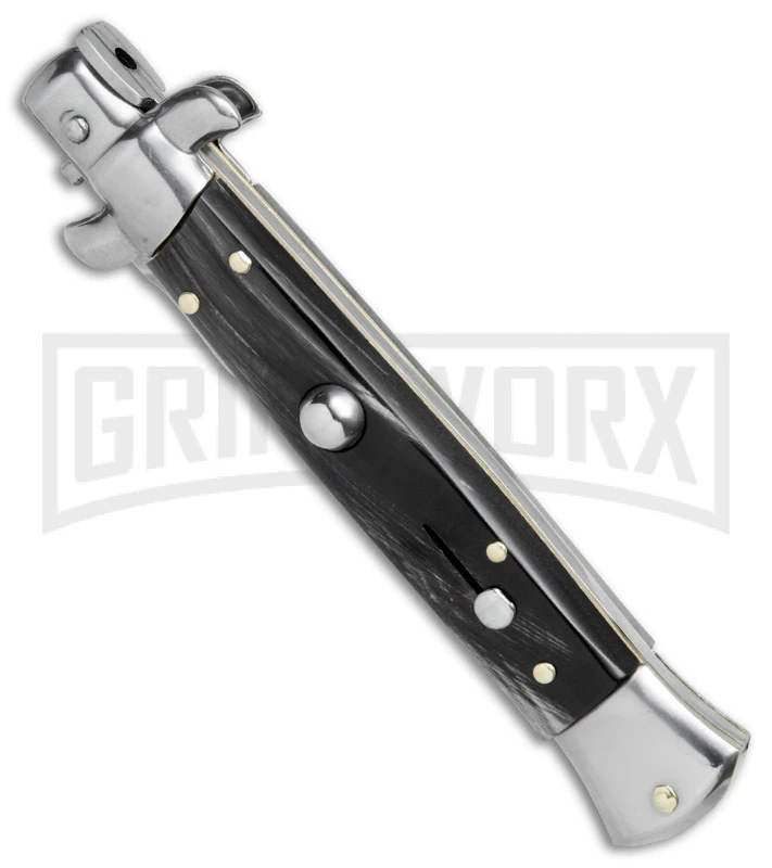 Frank B 11″ Italian Stiletto Dark Horn Automatic Knife – Flat Grind