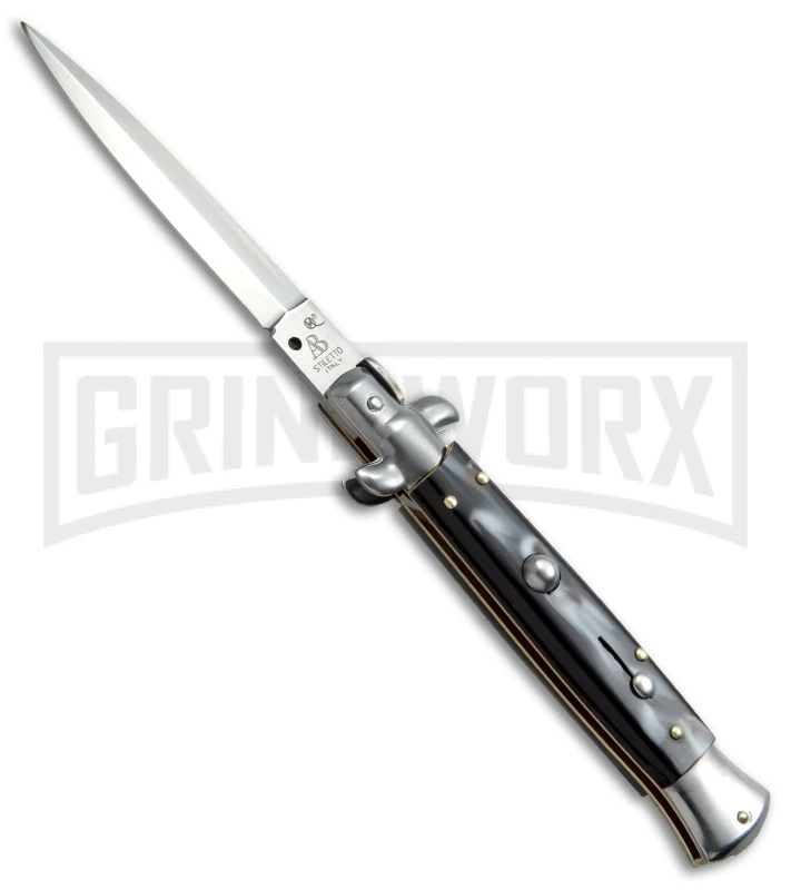 Frank B 11″ Italian Stiletto Dark Horn Automatic Knife – Flat Grind