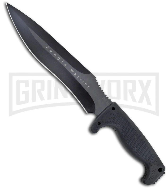 The Jungle series is durable and comfortable with a molded Kraton handle that features the trademark Digi-Grip handle texture, a way to guarantee gripping power where you need it. The Warrior features a thicker blade and a new blade grinds. Also, includes a Nylon sheath with utility pouch.