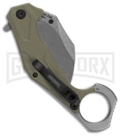 Kershaw Outlier OD Green GRN Assisted Folding Karambit – Stonewash Plain