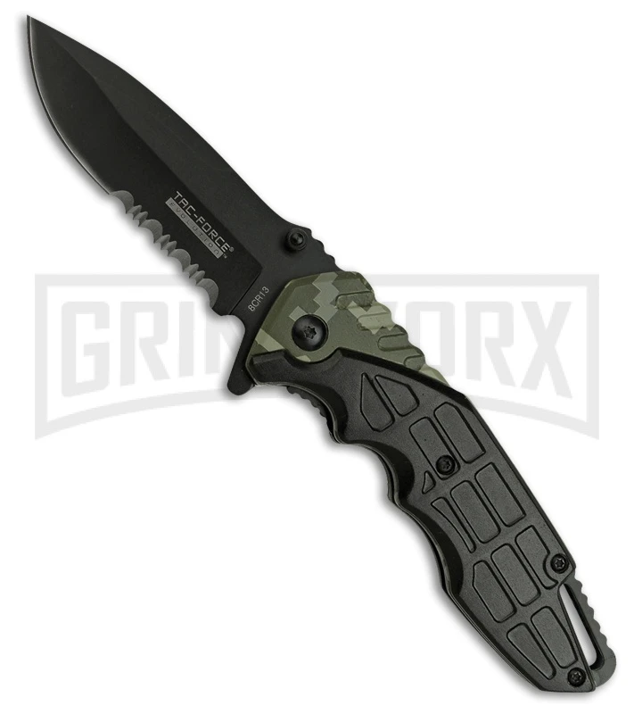 Tac-Force Evolution Explosive Camo Spring Assisted Knife – Black Serr