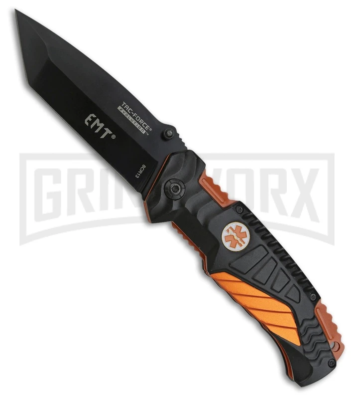 The Tac-Force Evolution Topflight is a spring assisted knife for everyday carry. The 8Cr13MoV stainless steel, tanto blade has a black finish, and a thumb stud opener. The handle is made of black and orange aluminum that features a lanyard hole, EMS inlay shield, and a liner lock mechanism. It comes with a stainless steel pocket clip.