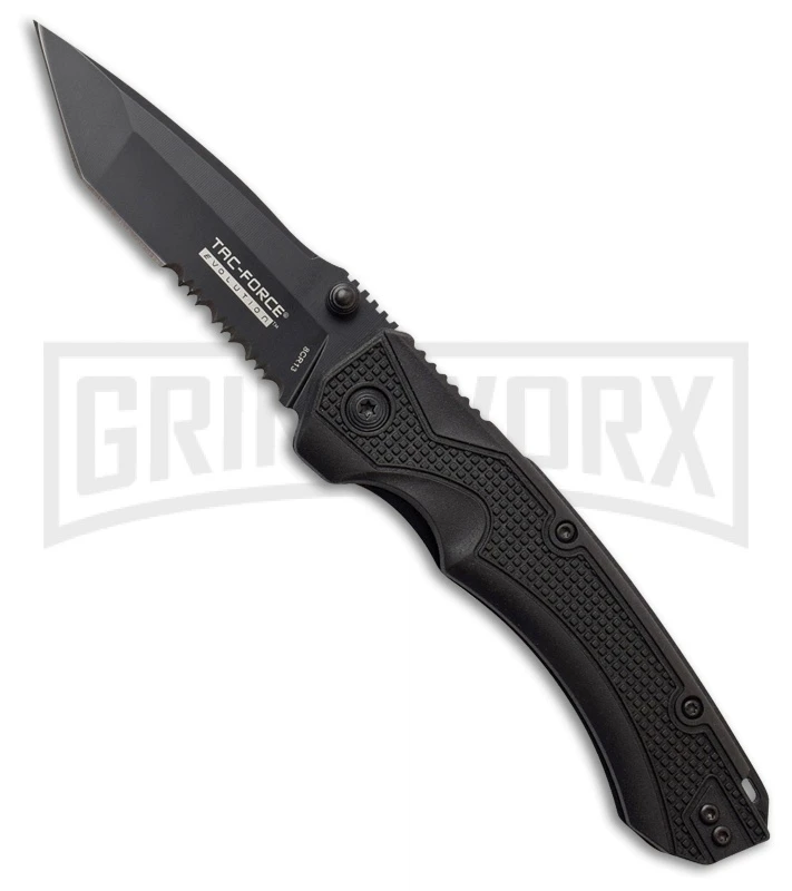 Tac-Force Evolution Vacate Black Rubber Spring Assisted Knife – Black Serr