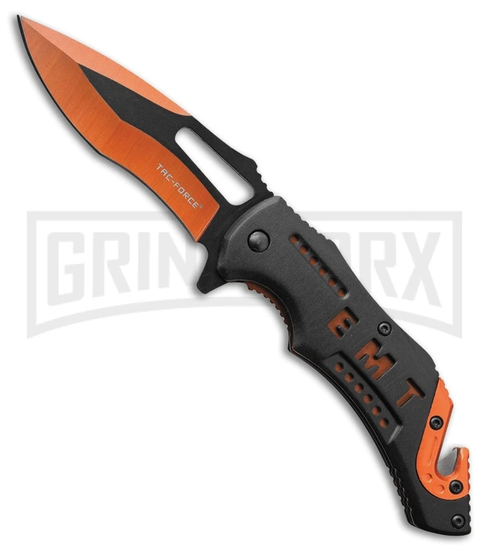 Tac-Force Rescue EMT Black Spring Assisted Knife – Orange Plain