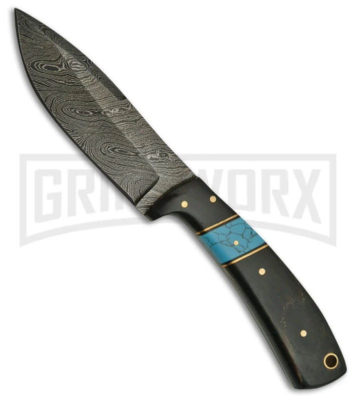 Tallen Apache Black Horn Fixed Blade Knife – Damascus Plain