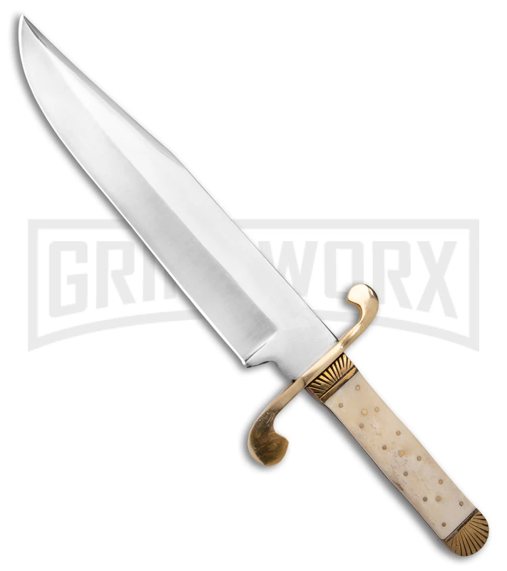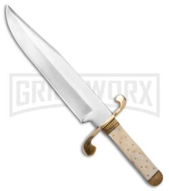 Tallen Frontier Classic Bowie White Bone Fixed Blade Knife – Satin Plain