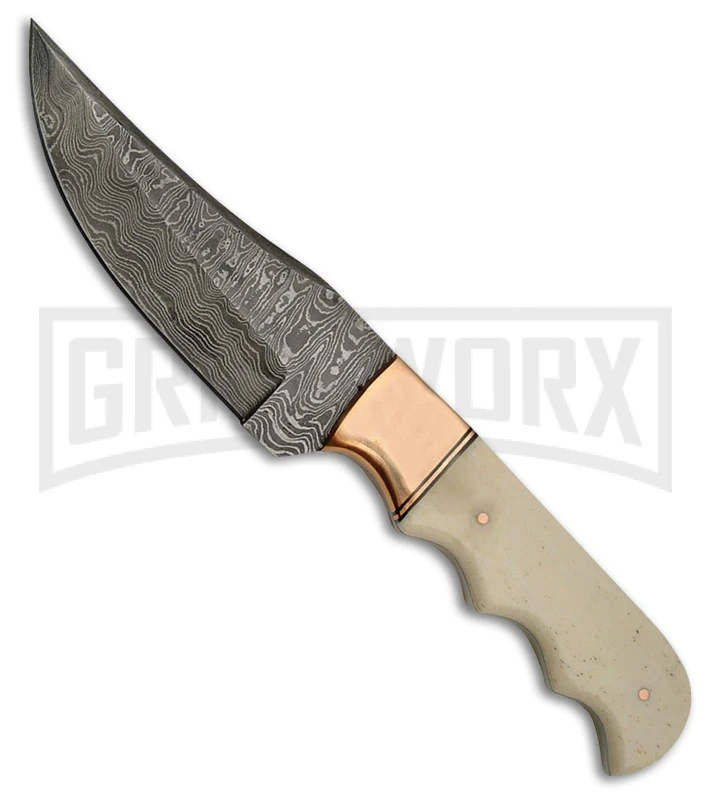 Tallen Skin Tail White Bone Fixed Blade Knife – Damascus Plain