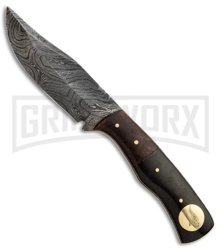 Tallen Wallaby Hunter Ebony/Wood Fixed Blade Knife – Damascus Plain