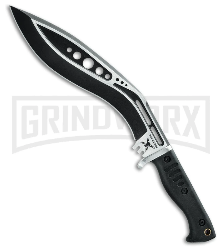 The United Cutlery M48 is a fixed blade knife, ideal for tactical uses. The M48 features a two-tone finished, 2Cr13 steel, kukri blade. The handle is made of black TPR. The leg sheath is also made of black TPR with polypropylene inner cover.