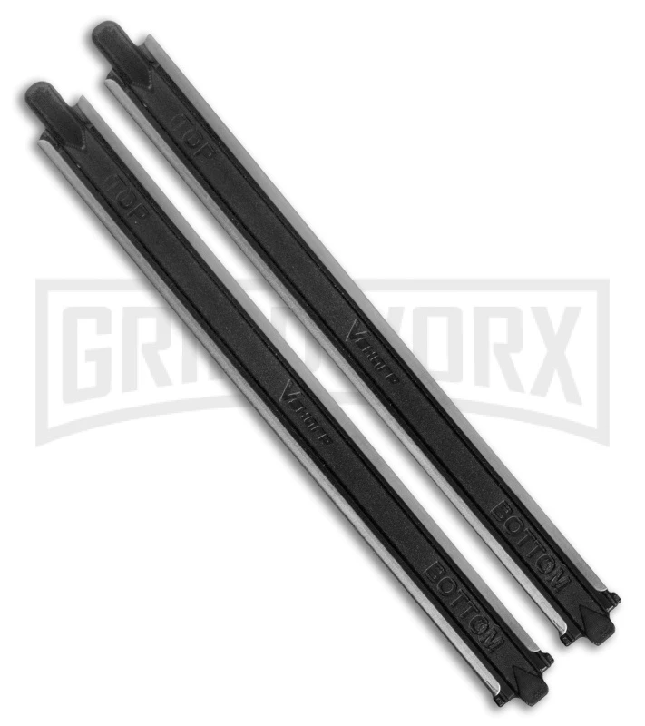 These extra coarse diamond hones work with the V-Sharp Classic II Diamond Sharpener from Warthog Sharpeners. They have a 270 diamond grit that is ideal for sharpening kitchen, pocket, and hunting knives. It leaves a toothy, micro-fine serration that is perfect for cutting through vegetables or meats. Item comes with two diamond honers that feature an easy slide on design. Always keep your knives at their peak sharpness with the tools and accessories from Warthog.